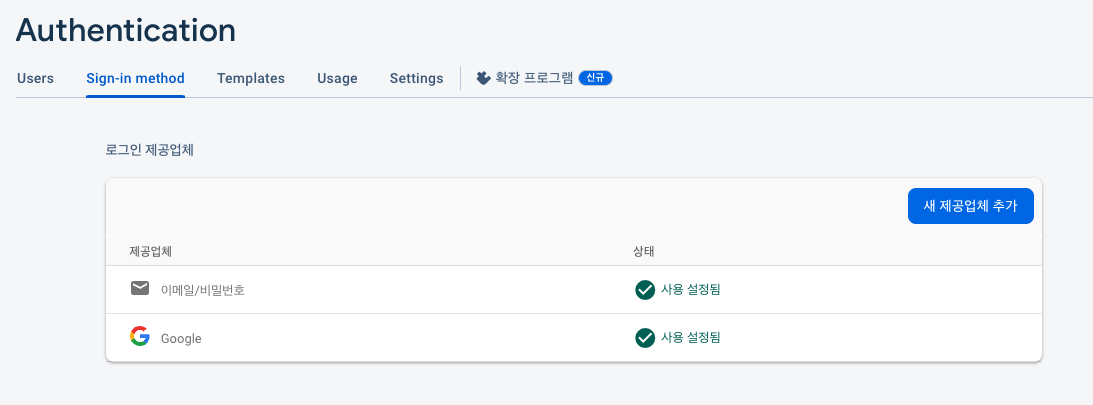 '새 재공업체 추가' 에서 구글을 추가 해주자!