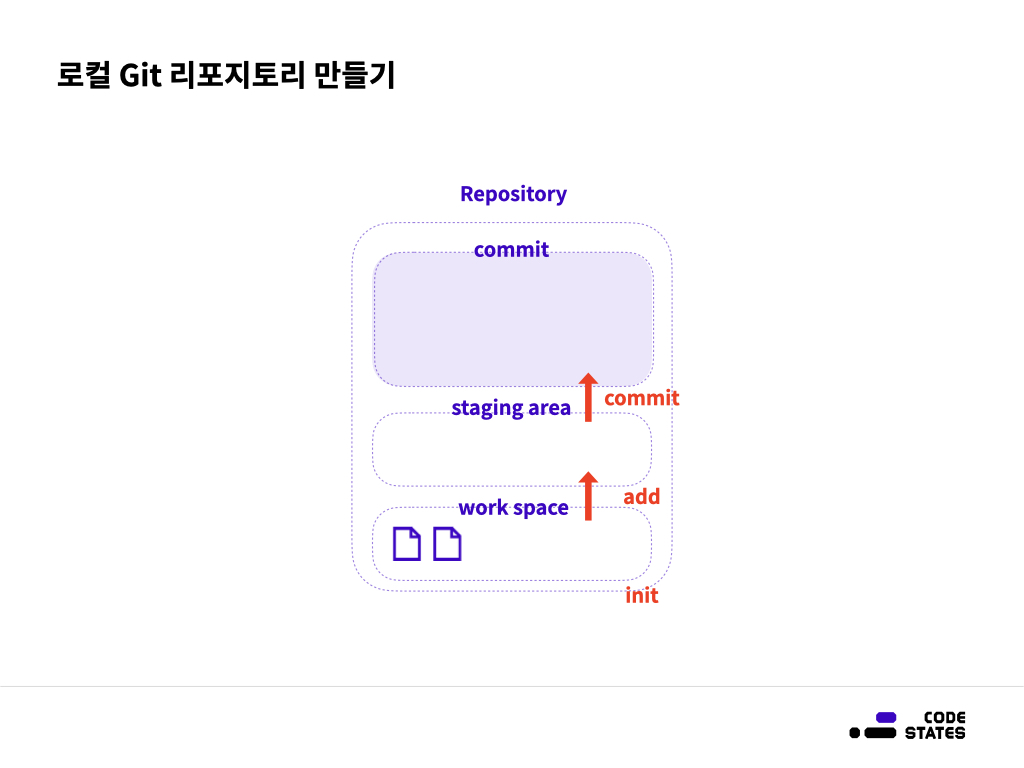 - staging area 코드의 용도를 적어두는 행위 (커밋 메시지 -m "commit message")