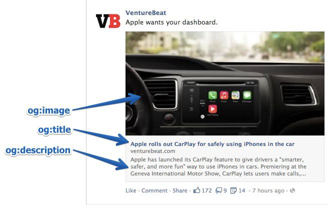 두 번째 경우는 property 속성을 사용하며, 다른 사람에게 공유하기 위한 것이 목적입니다. 특히 property 속성을 사용하는 경우는 오픈 그래프(Open Graph) 라고 하며, 페이스북(현 Meta)에서 게시물을 공유하기 위한 목적으로 만들었으며, 각 속성값 앞에는 오픈 그래프를 뜻하는 “og”가 붙습니다.
